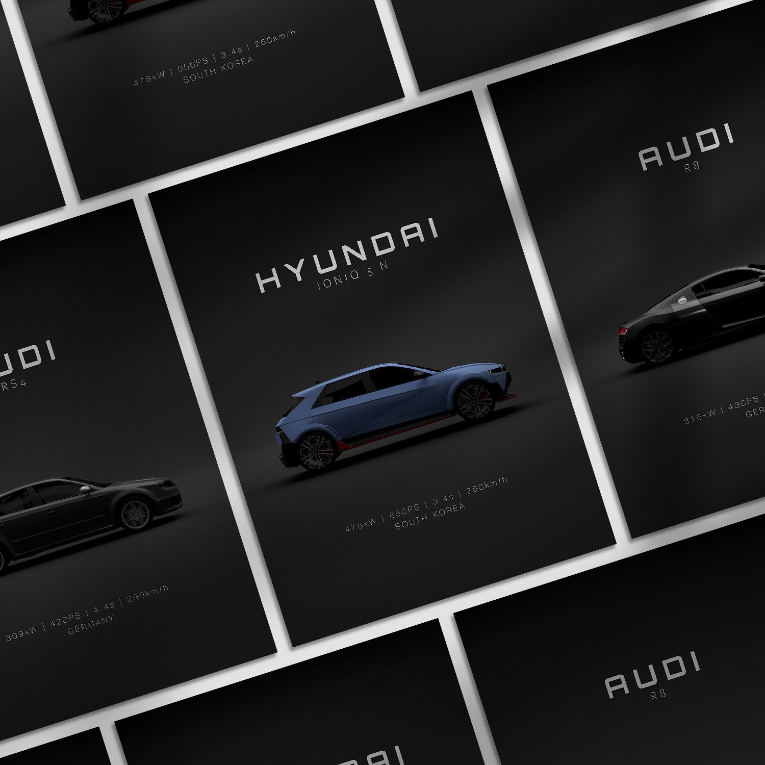 1869 Audi R8 2010, 1869 2024 Hyundai Ioniq 5 N – Blue Matte, 1864 Audi RS4 B7