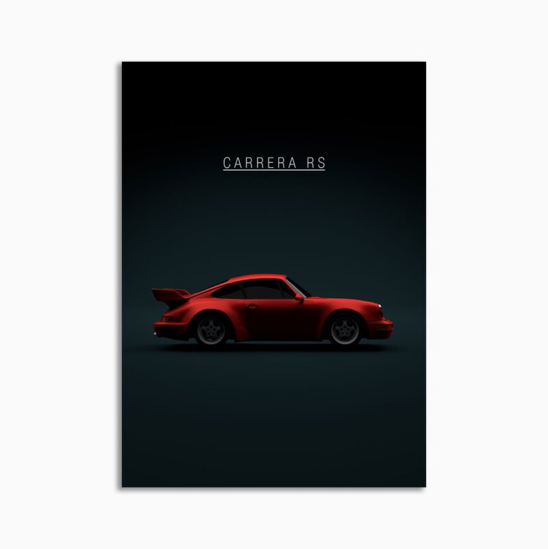 This 1992 Porsche 911 3 8 Carrera RS (964) Red digital poster is minimalist motorsport-inspired wall art – built around stance, speed, and a restrained aesthetic.