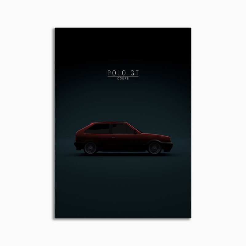 This polo mk 2 gt coupe digital poster is minimalist automotive wall art designed for modern interiors. It emphasizes silhouette, proportion, and a premium, gallery-like presentation.