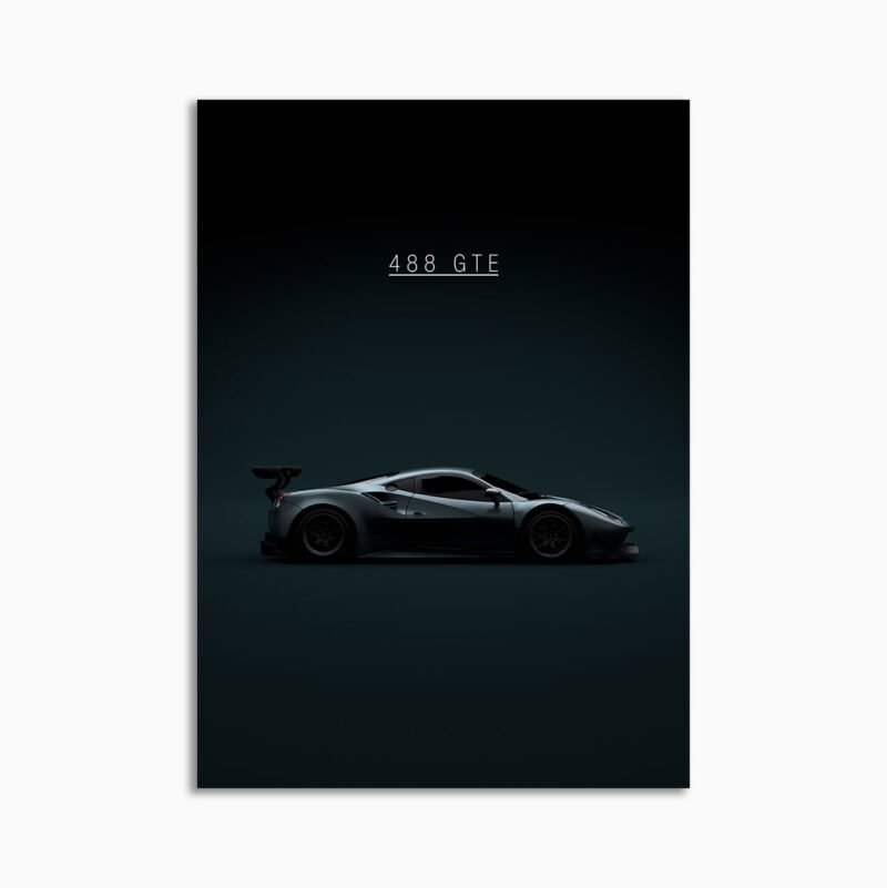 This Ferrari 488 GTE digital poster is minimalist automotive wall art designed for modern interiors. It emphasizes silhouette, proportion, and a premium, gallery-like presentation.