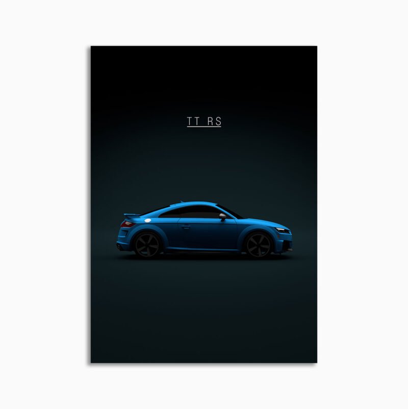 This Audi TT RS 2021 – Blue digital poster is minimalist motorsport-inspired wall art – built around stance, speed, and a restrained aesthetic.