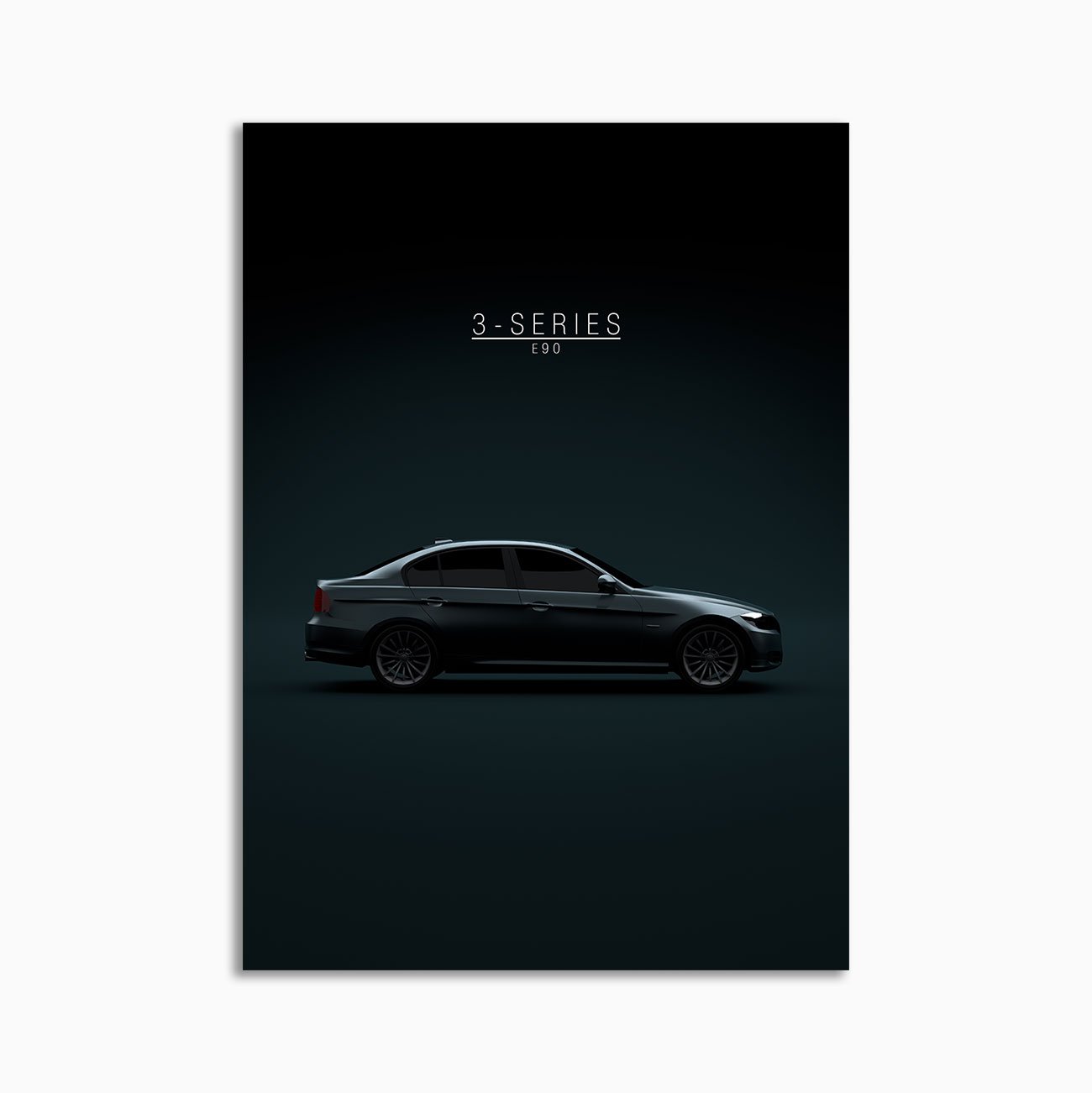 This BMW 3-Series E90 2011 digital poster is minimalist automotive wall art designed for modern interiors. It emphasizes silhouette, proportion, and a premium, gallery-like presentation.