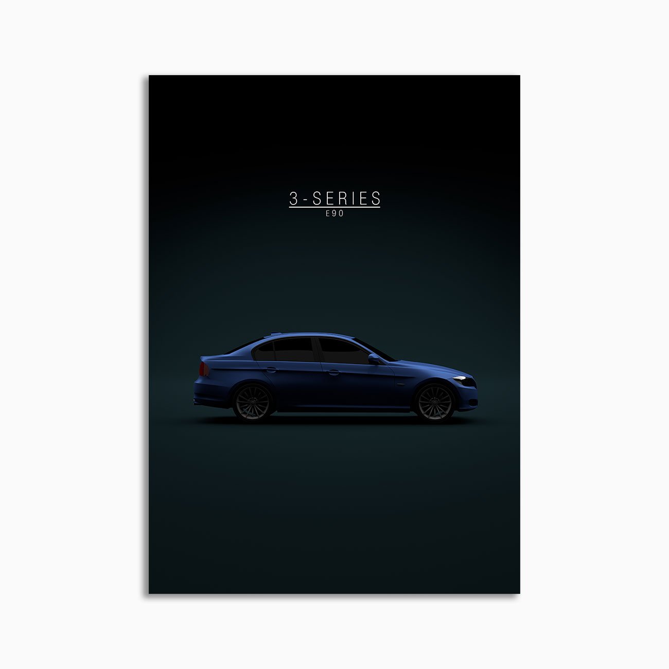 This BMW 3-Series Sedan 2011 – Blue digital poster is minimalist automotive wall art designed for modern interiors. It emphasizes silhouette, proportion, and a premium, gallery-like presentation.