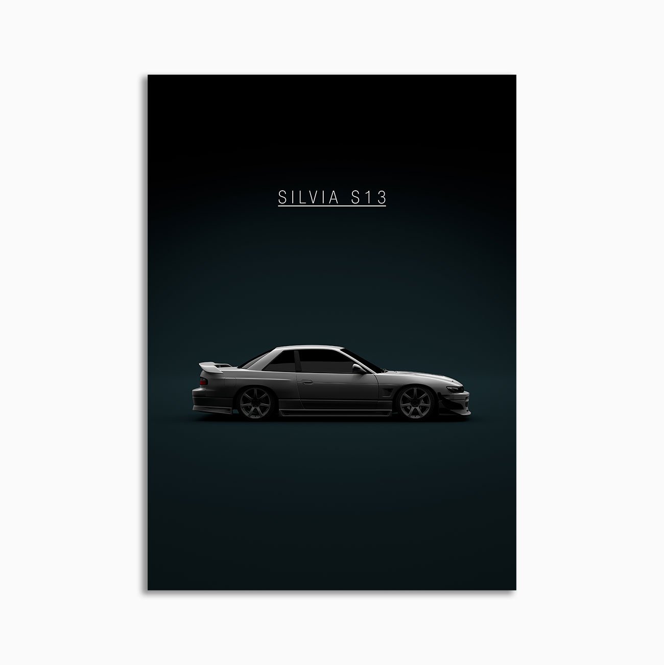 This Nissan Silvia S13 G-Corporation 1988 – White digital poster is minimalist automotive wall art designed for modern interiors. It emphasizes silhouette, proportion, and a premium, gallery-like presentation.