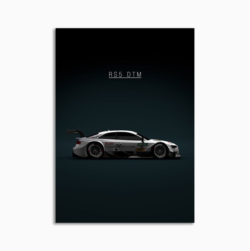 This Audi RS5 DTM 2014 digital poster is minimalist motorsport-inspired wall art – built around stance, speed, and a restrained aesthetic.