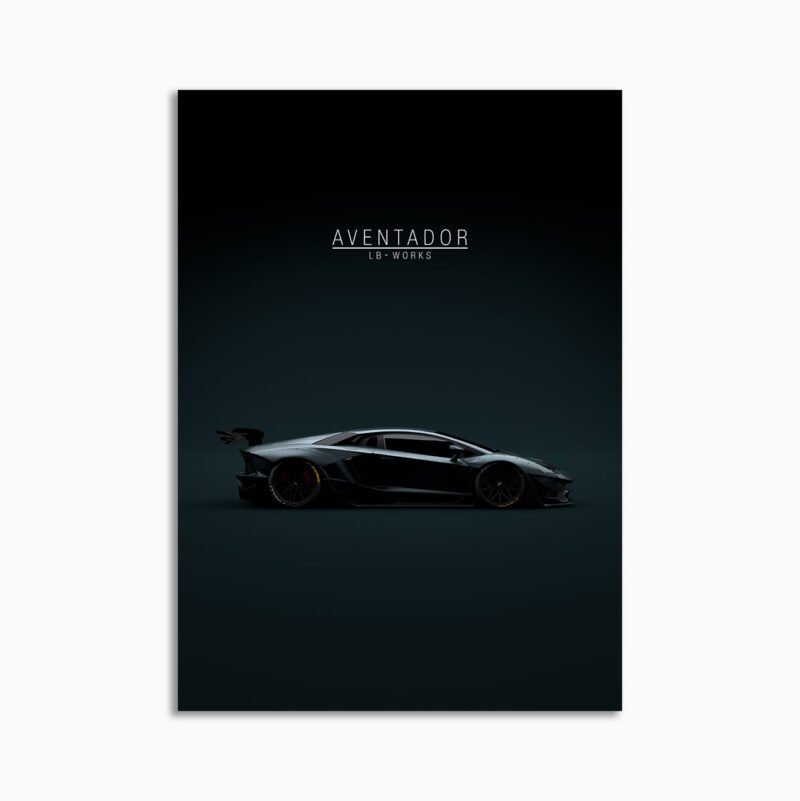 This 2011 Lamborghini Aventador LB WORKS Limited – black digital poster is minimalist automotive wall art designed for modern interiors. It emphasizes silhouette, proportion, and a premium, gallery-like presentation.