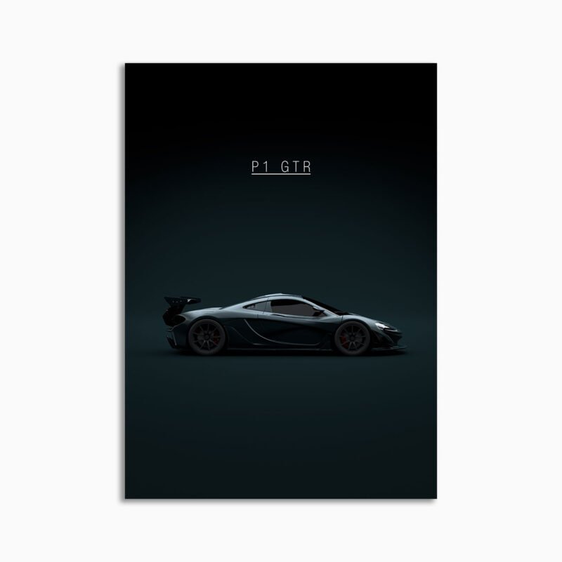 This 2015 McLaren P1 GTR – Black digital poster is minimalist automotive wall art designed for modern interiors. It emphasizes silhouette, proportion, and a premium, gallery-like presentation.