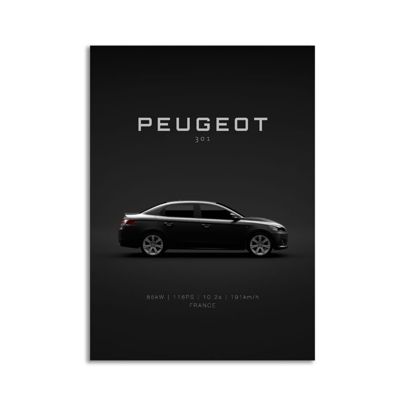 This 2013 Peugeot 301 digital poster is clean, technical automotive wall art with a detail-forward, premium look. It’s built for modern interiors where less is more – strong silhouette, controlled contrast, and a focused composition.