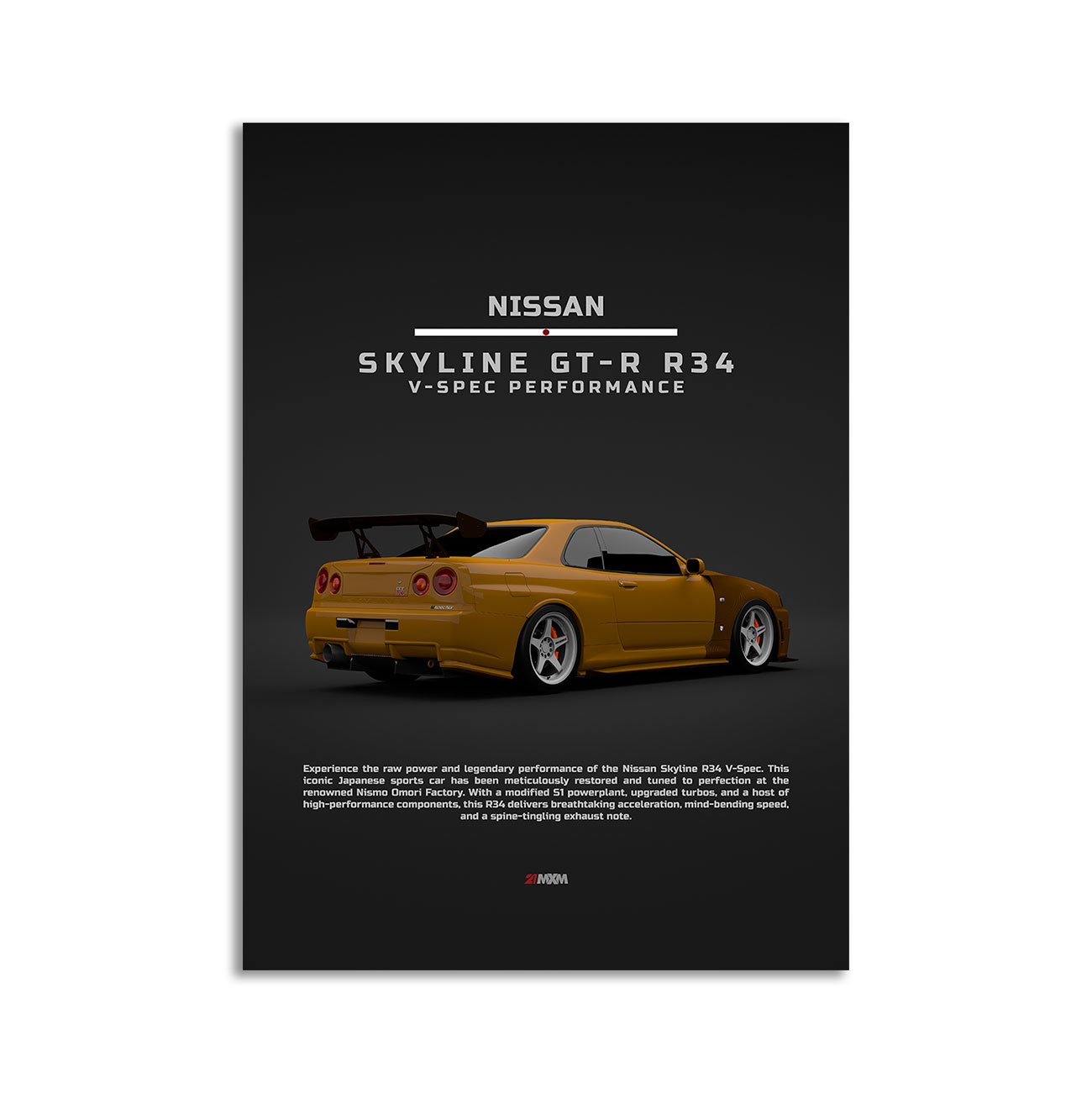 This Nissan Skyline R34 V-spec Performance – Back – Orange digital poster is clean, technical automotive wall art with a detail-forward, premium look. It’s built for modern interiors where less is more – strong silhouette, controlled contrast, and a focused composition.