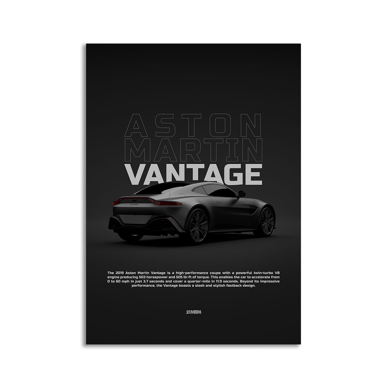 This Aston Martin Vantage 2019 – Back digital poster is clean, technical automotive wall art with a detail-forward, premium look. It’s built for modern interiors where less is more – strong silhouette, controlled contrast, and a focused composition.