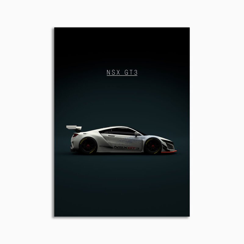 This 2019 Acura NSX GT3 digital poster is minimalist motorsport-inspired wall art – built around stance, speed, and a restrained aesthetic.