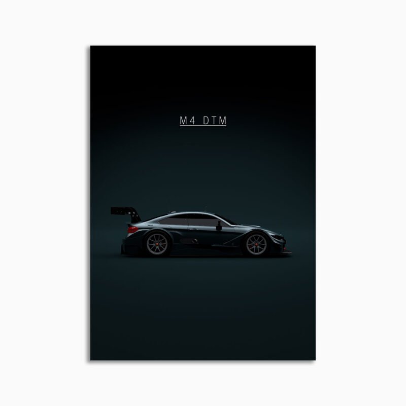 This BMW M4 DTM 2015 Race Car – Black digital poster is minimalist motorsport-inspired wall art – built around stance, speed, and a restrained aesthetic.
