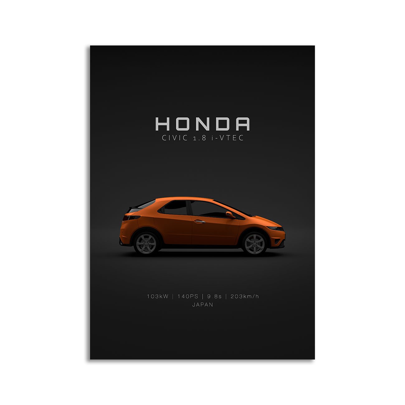 This Honda Civic 2008 – Orange digital poster is clean, technical automotive wall art with a detail-forward, premium look. It’s built for modern interiors where less is more – strong silhouette, controlled contrast, and a focused composition.
