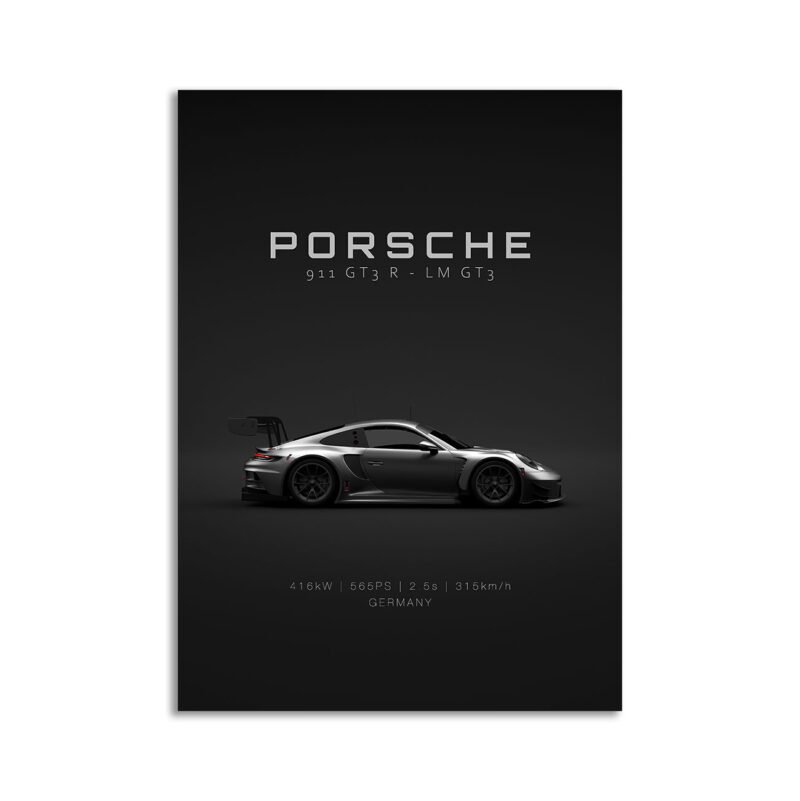This LM GT3 911 GT3 R 2023 digital poster is clean, technical automotive wall art with a detail-forward, premium look. It’s built for modern interiors where less is more – strong silhouette, controlled contrast, and a focused composition.