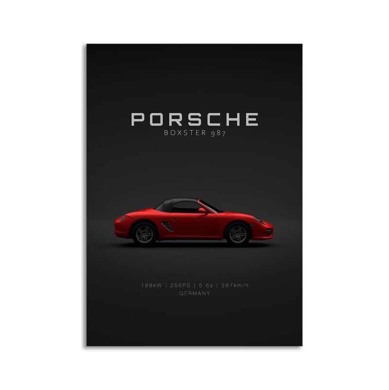 This Porsche Boxster 987 digital poster is clean, technical automotive wall art with a detail-forward, premium look. It’s built for modern interiors where less is more – strong silhouette, controlled contrast, and a focused composition.