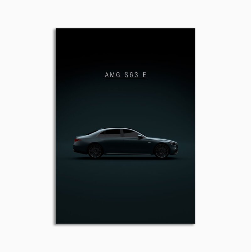 This Mercedes AMG S 63 E Performance digital poster is minimalist automotive wall art designed for modern interiors. It emphasizes silhouette, proportion, and a premium, gallery-like presentation.