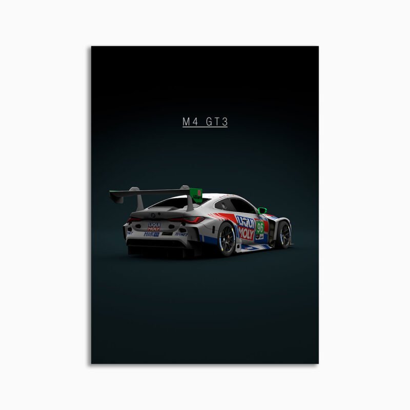 This BMW M3 GT3 – Turner Motorsport 96 – Back digital poster is minimalist motorsport-inspired wall art – built around stance, speed, and a restrained aesthetic.