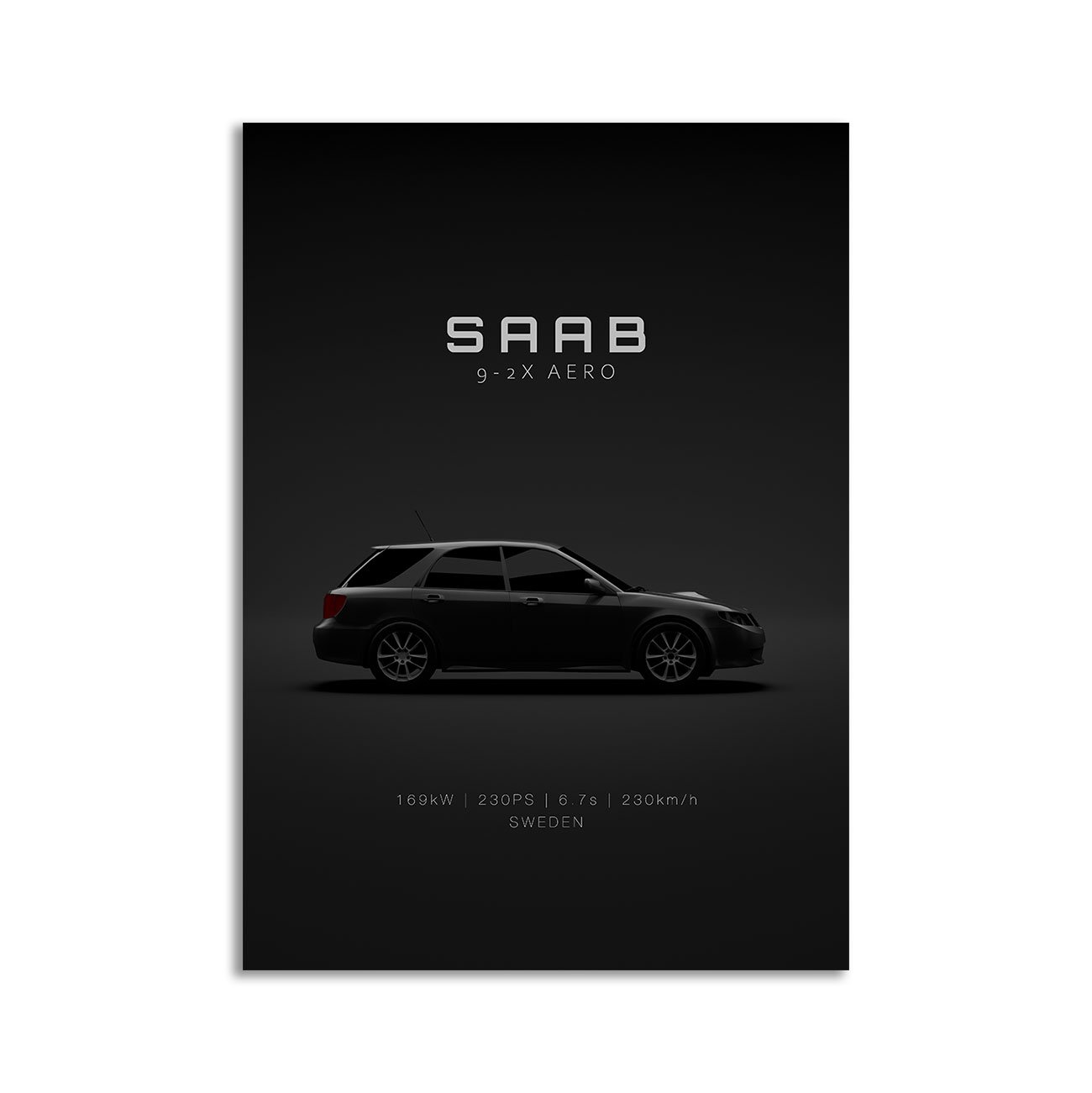 Built for enthusiasts who recognize the shape instantly, this design highlights proportion and stance – the small cues that make the Saab 9-2x Aero feel unmistakable.