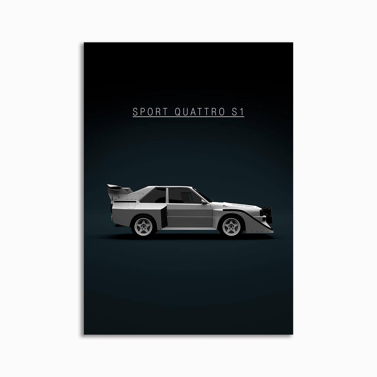 This Audi Sport Quattro S1 – White digital poster is minimalist automotive wall art designed for modern interiors. It emphasizes silhouette, proportion, and a premium, gallery-like presentation.