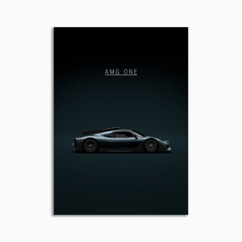 This Mercedes-AMG Project One digital poster is minimalist automotive wall art designed for modern interiors. It emphasizes silhouette, proportion, and a premium, gallery-like presentation.