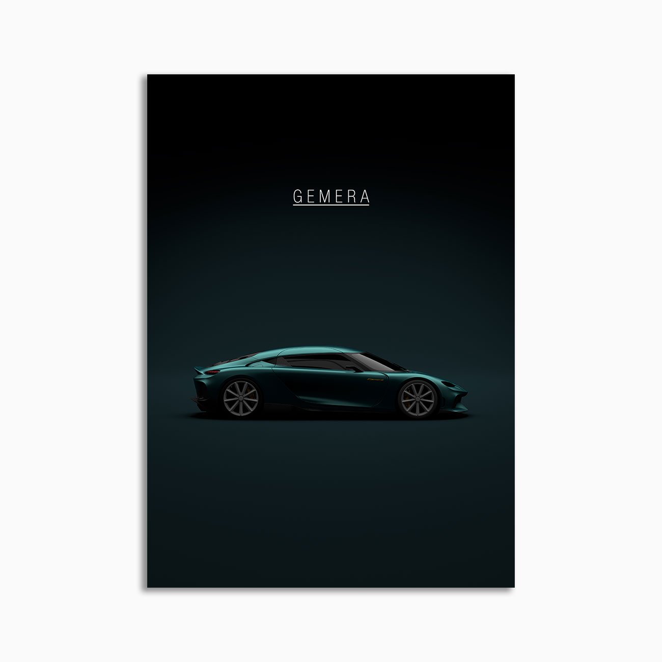 This Koenigsegg Gemera – Green digital poster is minimalist automotive wall art designed for modern interiors. It emphasizes silhouette, proportion, and a premium, gallery-like presentation.