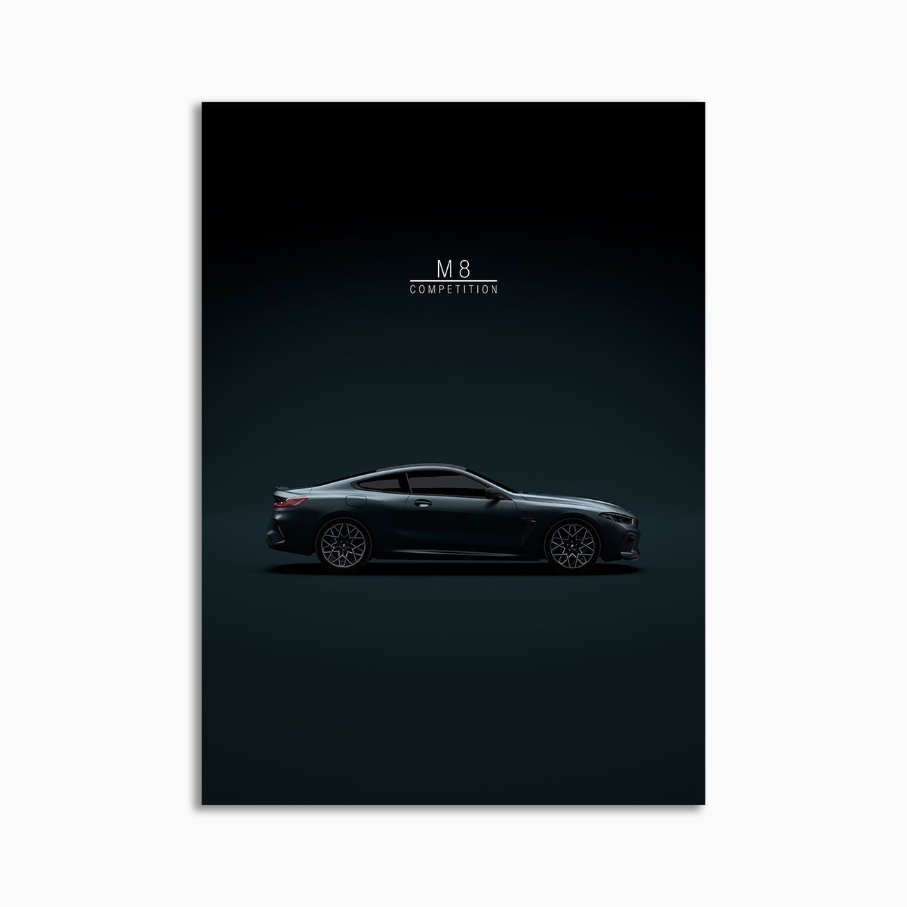 This 2020 BMW M8 Competition digital poster is minimalist automotive wall art designed for modern interiors. It emphasizes silhouette, proportion, and a premium, gallery-like presentation.