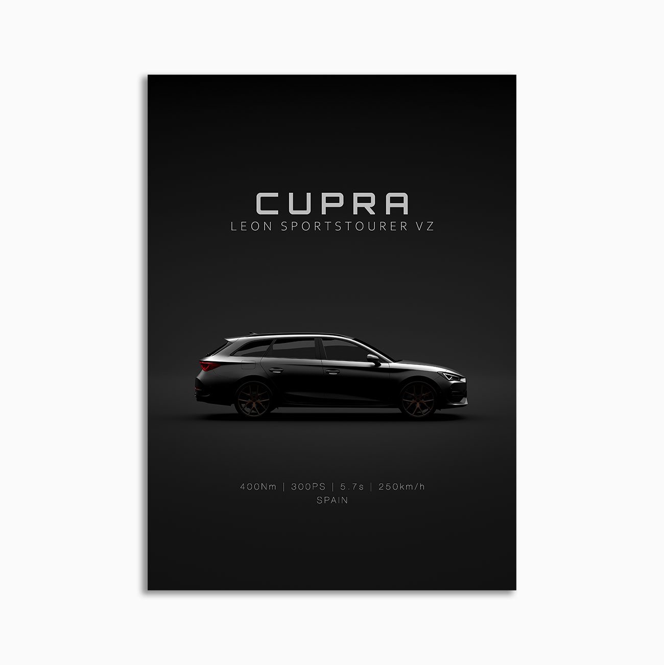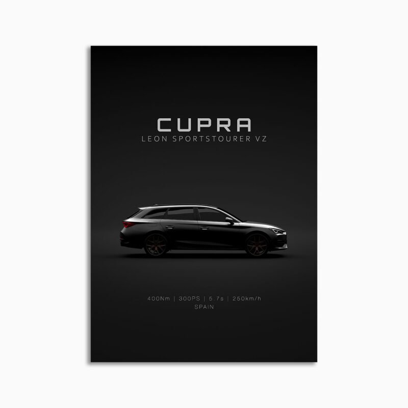 This 2021 Cupra Leon Sportstourer – rims digital poster is clean, technical automotive wall art with a detail-forward, premium look. It’s built for modern interiors where less is more – strong silhouette, controlled contrast, and a focused composition.