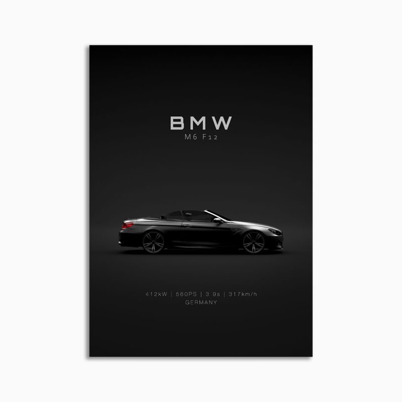 This BMW M6 F12 Convertible digital poster is clean, technical automotive wall art with a detail-forward, premium look. It’s built for modern interiors where less is more – strong silhouette, controlled contrast, and a focused composition.