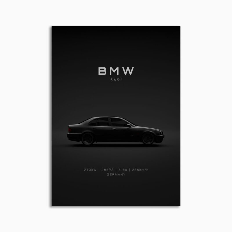 This BMW 540i E39 digital poster is clean, technical automotive wall art with a detail-forward, premium look. It’s built for modern interiors where less is more – strong silhouette, controlled contrast, and a focused composition.