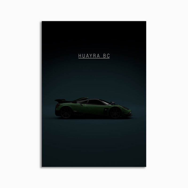 This Pagani Huayra BC – Green digital poster is minimalist automotive wall art designed for modern interiors. It emphasizes silhouette, proportion, and a premium, gallery-like presentation.