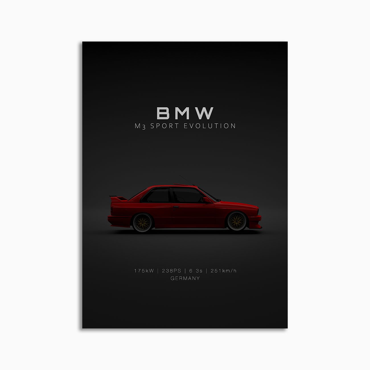 This BMW M3 E30 Evo 3 Red digital poster is clean, technical automotive wall art with a detail-forward, premium look. It’s built for modern interiors where less is more – strong silhouette, controlled contrast, and a focused composition.