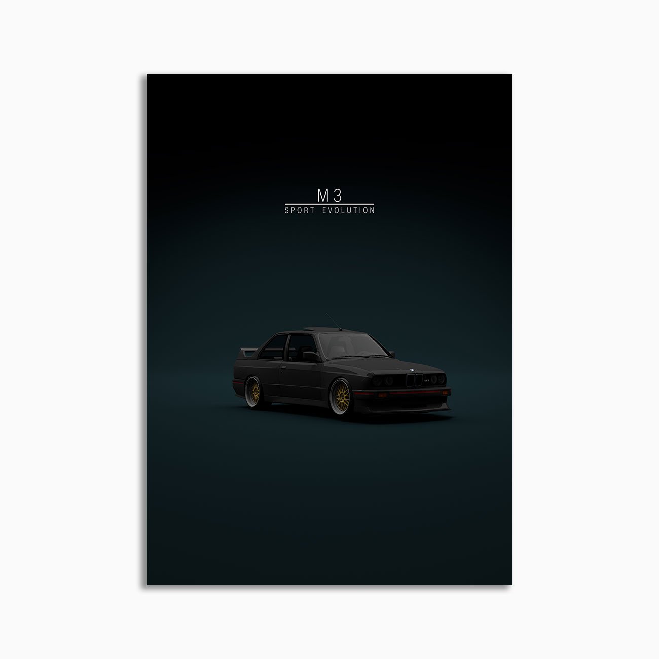 This BMW M3 E30 Evo 3 Black Front digital poster is minimalist automotive wall art designed for modern interiors. It emphasizes silhouette, proportion, and a premium, gallery-like presentation.