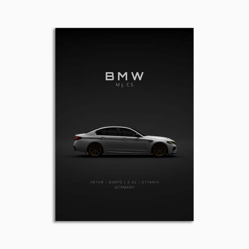 This BMW M5 CS F90 – White digital poster is clean, technical automotive wall art with a detail-forward, premium look. It’s built for modern interiors where less is more – strong silhouette, controlled contrast, and a focused composition.