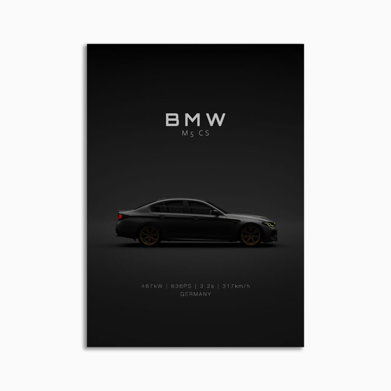 This BMW M5 CS F90 – Black digital poster is clean, technical automotive wall art with a detail-forward, premium look. It’s built for modern interiors where less is more – strong silhouette, controlled contrast, and a focused composition.