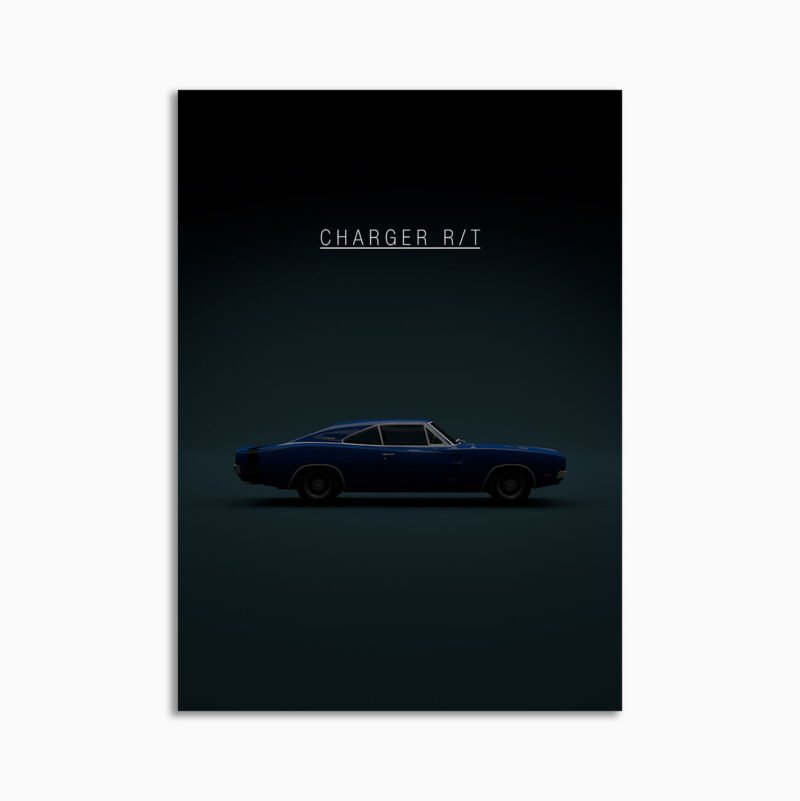The design strips away distractions to keep attention on stance, balance, and shape. The Dodge Charger RT 1969 – Blue reads instantly, cleanly, and confidently.
