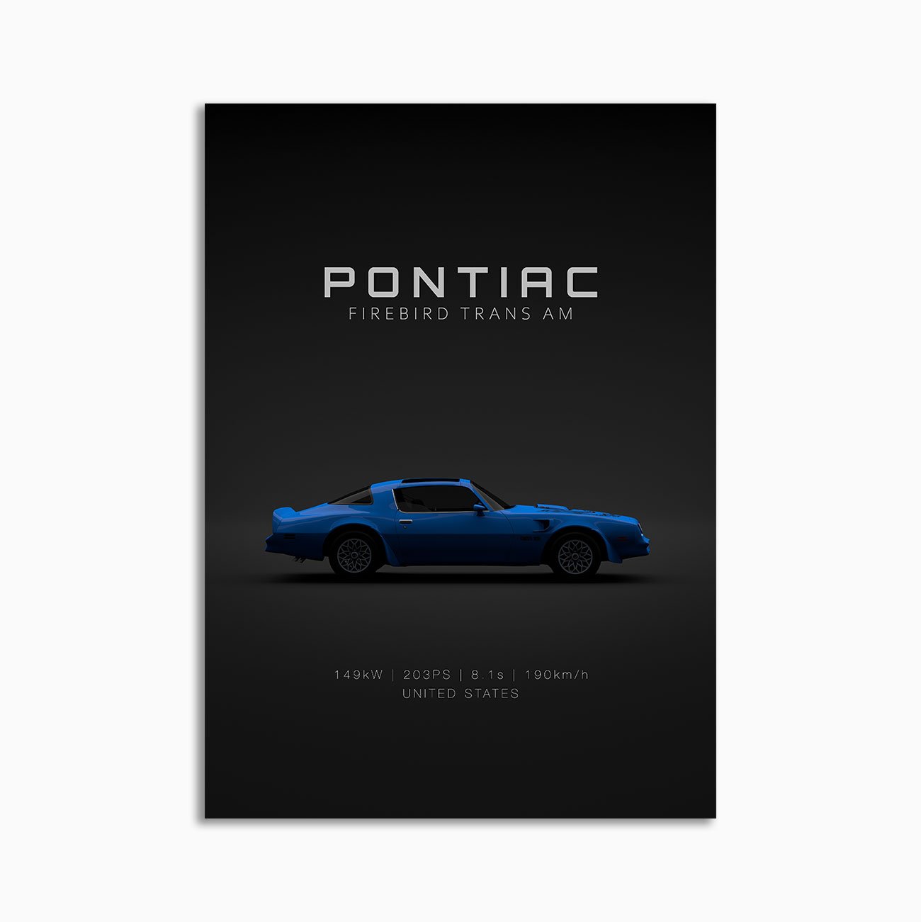 This Pontiac Firebird Trans Am – Blue digital poster is clean, technical automotive wall art with a detail-forward, premium look. It’s built for modern interiors where less is more – strong silhouette, controlled contrast, and a focused composition.