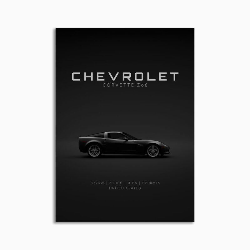 This Chevrolet Corvette C6 Z06 digital poster is clean, technical automotive wall art with a detail-forward, premium look. It’s built for modern interiors where less is more – strong silhouette, controlled contrast, and a focused composition.