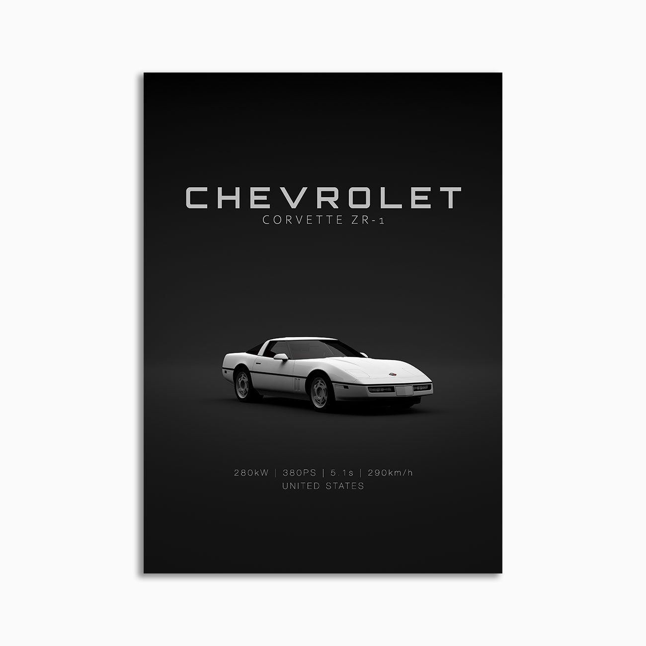 Chevrolet Corvette C4 ZR-1 White Front Minimalist Poster – Digital Download