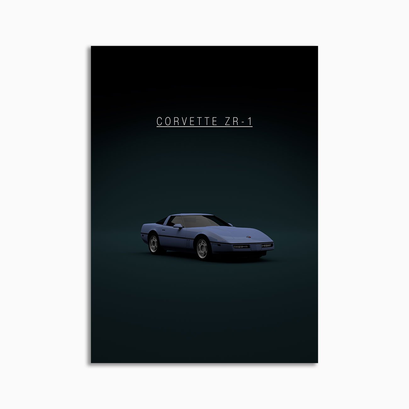 This Chevrolet Corvette C4 ZR-1 Blue Front digital poster is minimalist automotive wall art designed for modern interiors. It emphasizes silhouette, proportion, and a premium, gallery-like presentation.