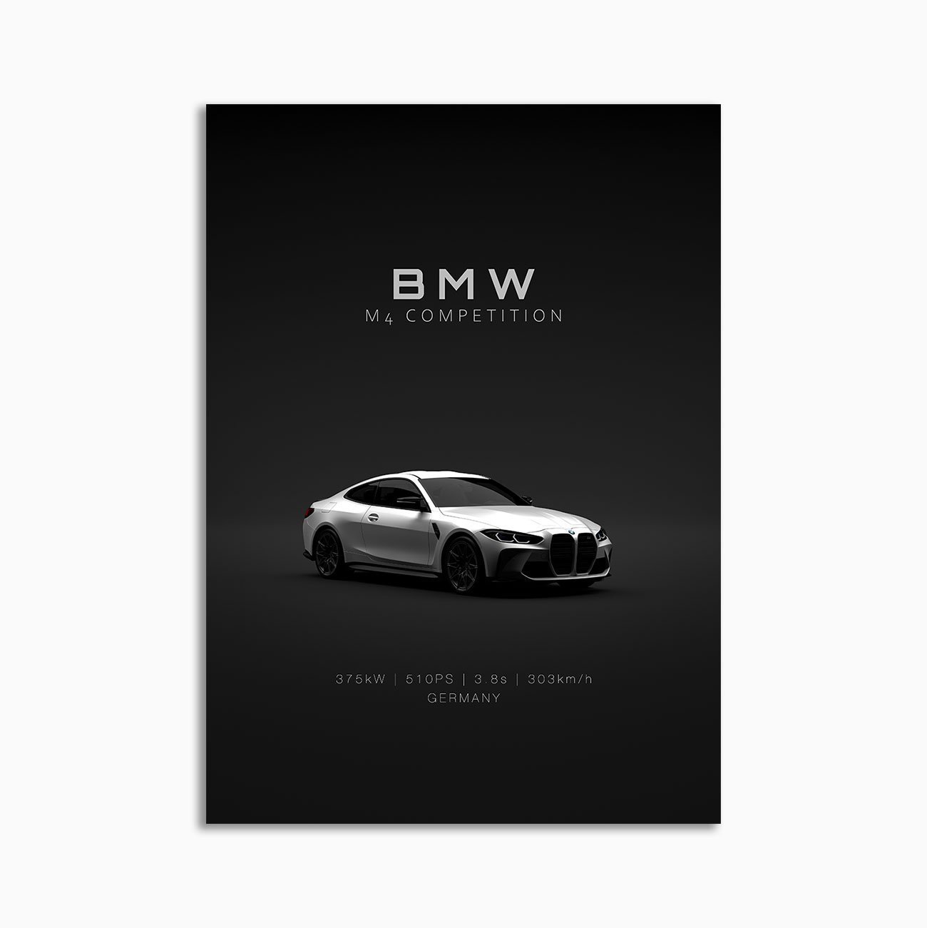 This BMW M4 G82 2021 SIlver Front digital poster is clean, technical automotive wall art with a detail-forward, premium look. It’s built for modern interiors where less is more – strong silhouette, controlled contrast, and a focused composition.