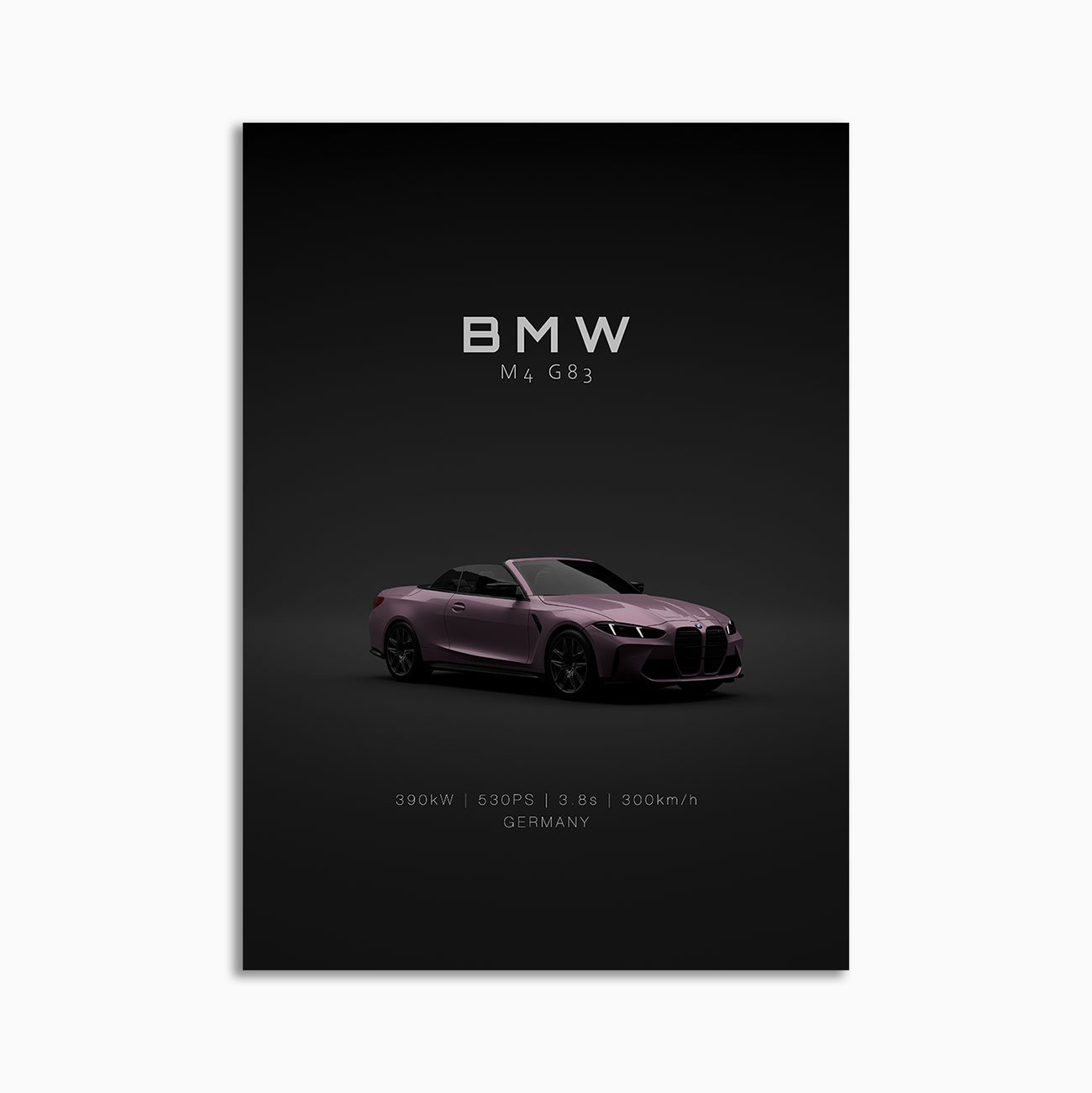 BMW M4 Convertible 2025 G83 Velvet Front Minimalist Poster – Digital Download
