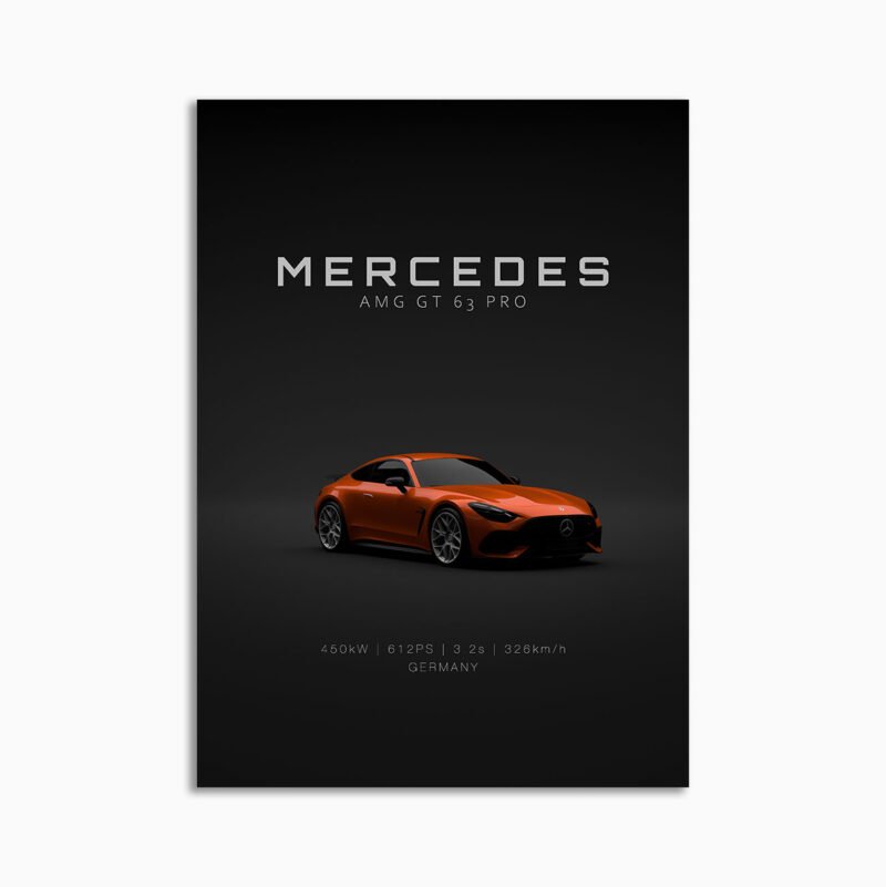 This Mercedes-Benz AMG GT63 PRO 2025 Orange Front digital poster is clean, technical automotive wall art with a detail-forward, premium look. It’s built for modern interiors where less is more – strong silhouette, controlled contrast, and a focused composition.