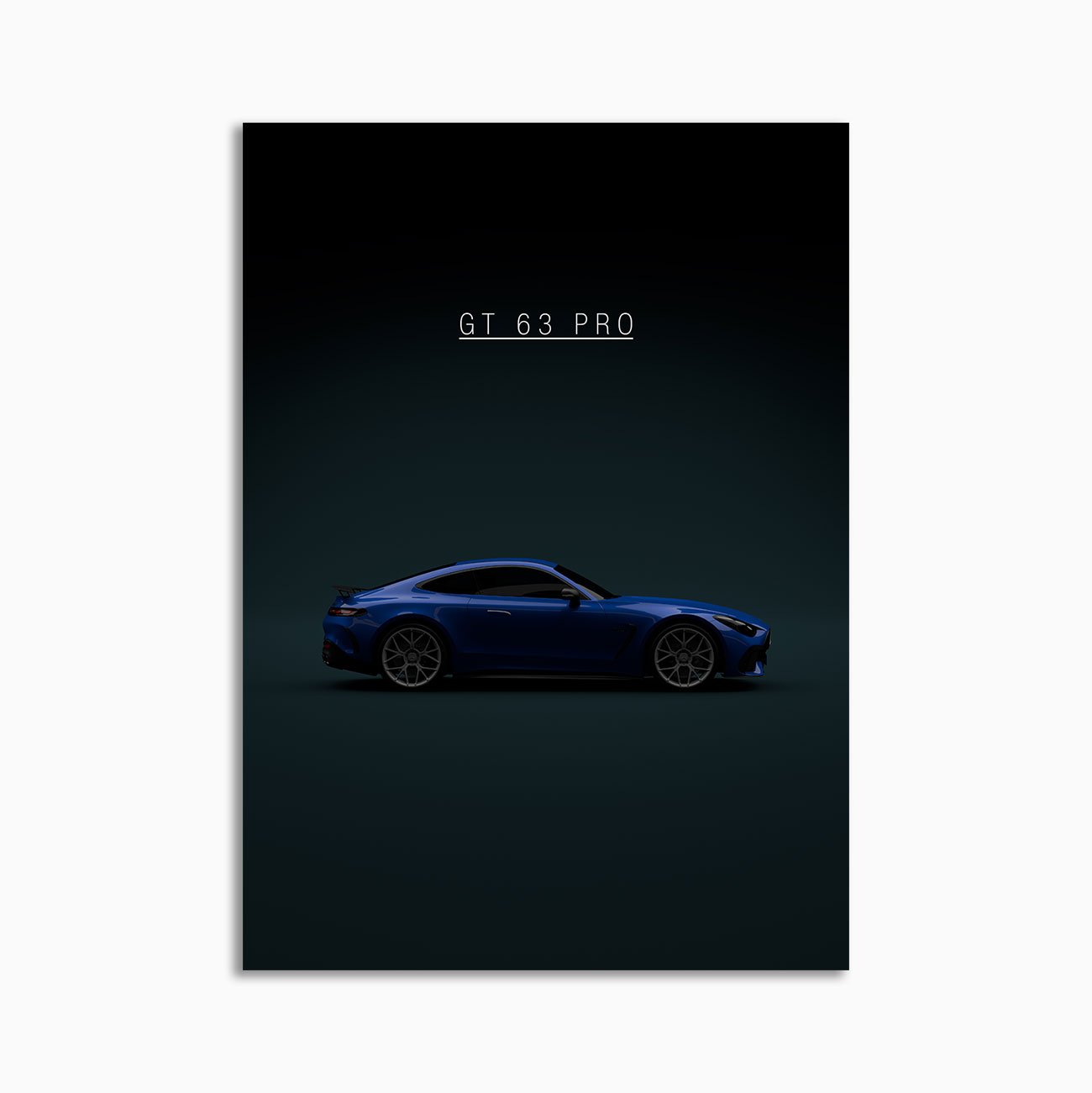This Mercedes-Benz AMG GT63 PRO 2025 Blue digital poster is minimalist automotive wall art designed for modern interiors. It emphasizes silhouette, proportion, and a premium, gallery-like presentation.