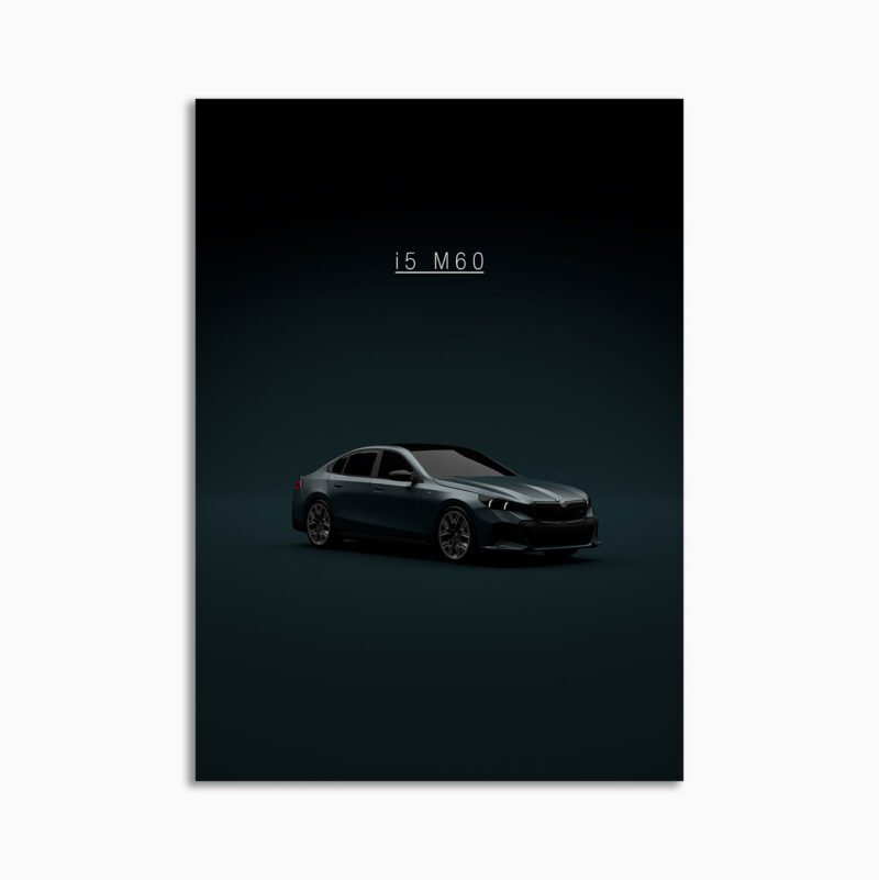 This BMW i5 M60 2024 Front digital poster is minimalist automotive wall art designed for modern interiors. It emphasizes silhouette, proportion, and a premium, gallery-like presentation.