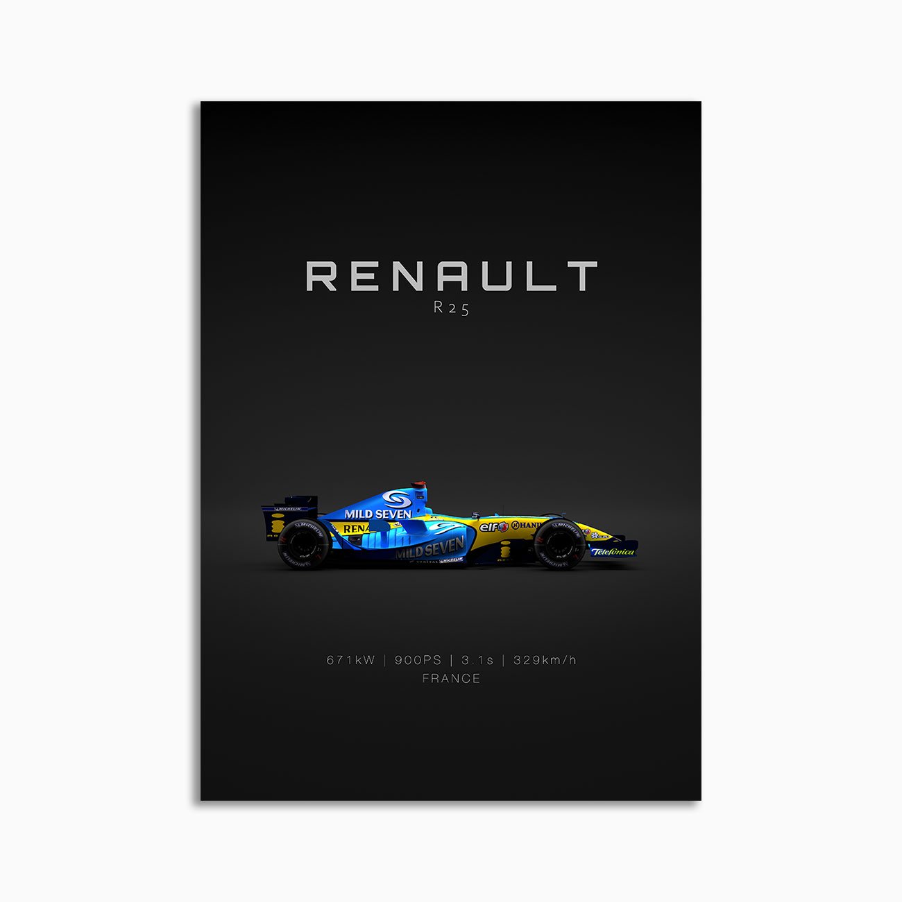 Built for enthusiasts who recognize the shape instantly, this design highlights proportion and stance – the small cues that make the Renault R25 – Alonso feel unmistakable.
