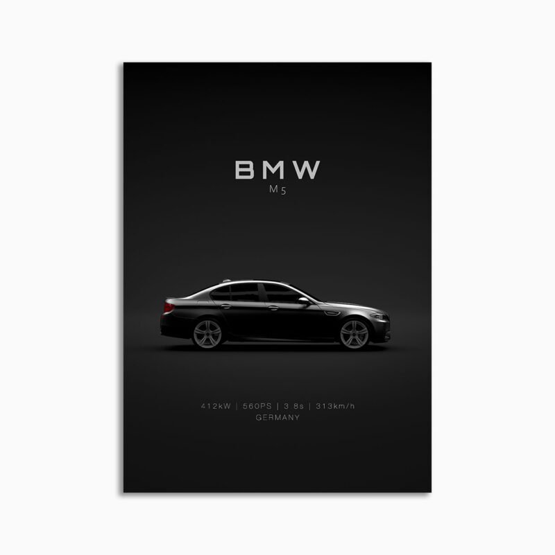 This 2012 BMW M5 F10 digital poster is clean, technical automotive wall art with a detail-forward, premium look. It’s built for modern interiors where less is more – strong silhouette, controlled contrast, and a focused composition.