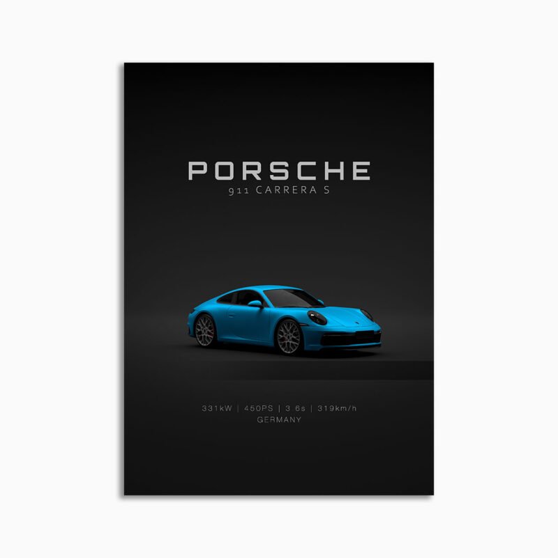 This Porsche 911 Carrera S 992 – Front – Blue digital poster is clean, technical automotive wall art with a detail-forward, premium look. It’s built for modern interiors where less is more – strong silhouette, controlled contrast, and a focused composition.