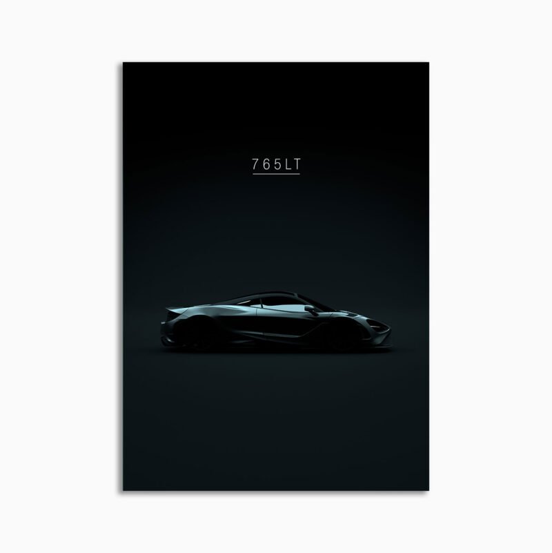 This 2021 McLaren 765lt digital poster is minimalist automotive wall art designed for modern interiors. It emphasizes silhouette, proportion, and a premium, gallery-like presentation.