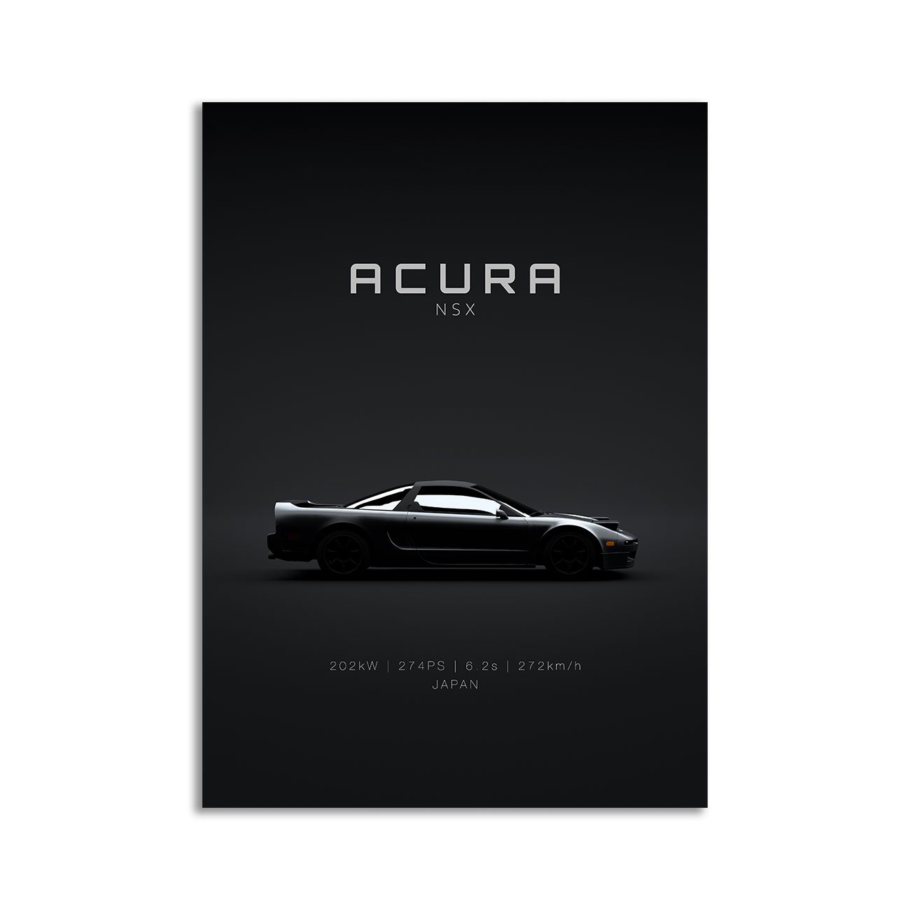 This 1991 Acura NSX digital poster is clean, technical automotive wall art with a detail-forward, premium look. It’s built for modern interiors where less is more – strong silhouette, controlled contrast, and a focused composition.