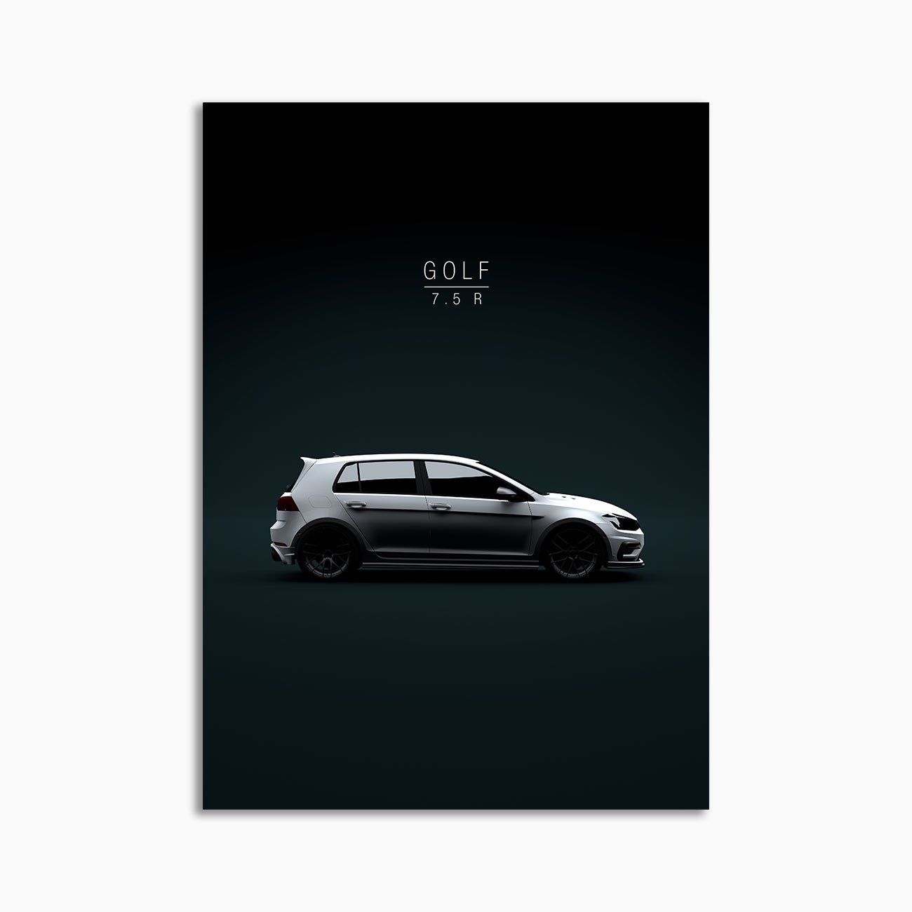 This 2018 Volkswagen Golf R-Line 7 5R digital poster is minimalist automotive wall art designed for modern interiors. It emphasizes silhouette, proportion, and a premium, gallery-like presentation.